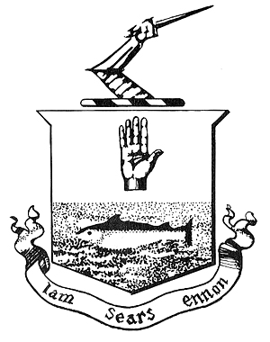 The red hand is a main feature of the O'Neill coat of Arms, and can be seen clearly in John O'Neills Arms illustrated below. In times gone by, it is said that a Viking Ship was approahing the coast of Ulster and the Captain told his crew that the first sailor who touched the shore with his right hand would have it for himself. Two sailors then lowered themselves onto coracles and rowed for the shore.